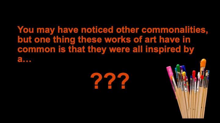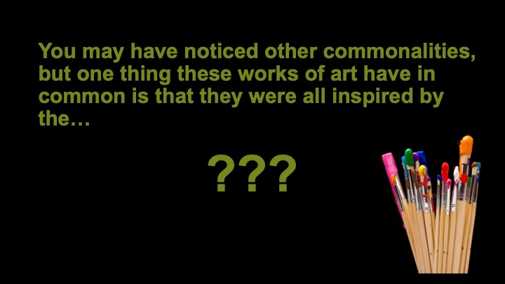 Since you’ve figured out what these sets of artworks have in common, click through both sets again while looking for how each artist represents the subject a little differently in their own way.