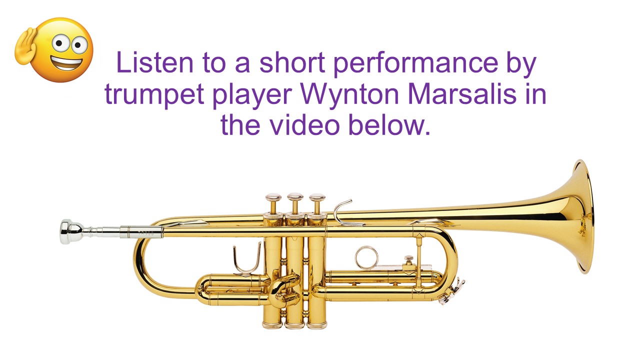 Let’s check out a jazz interpretation of “Old MacDonald” that was written by a great musician and composer, Wynton Marsalis. Marsalis plays trumpet in this recording, but as a composer, he also wrote all of the parts for the other musicians you’ll hear playing with him!